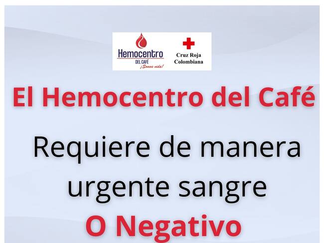 El Hemocentro del Café perteneciente a la Cruz Roja Colombiana Seccional Caldas, necesita de su ayuda, ya que en estos momentos no cuentan con las unidades de sangre necesarias para cubrir los requerimientos en los Centros Asistenciales de la Región, en este momento hay pacientes esperando transfusión y no hay del tipo O negativo.
