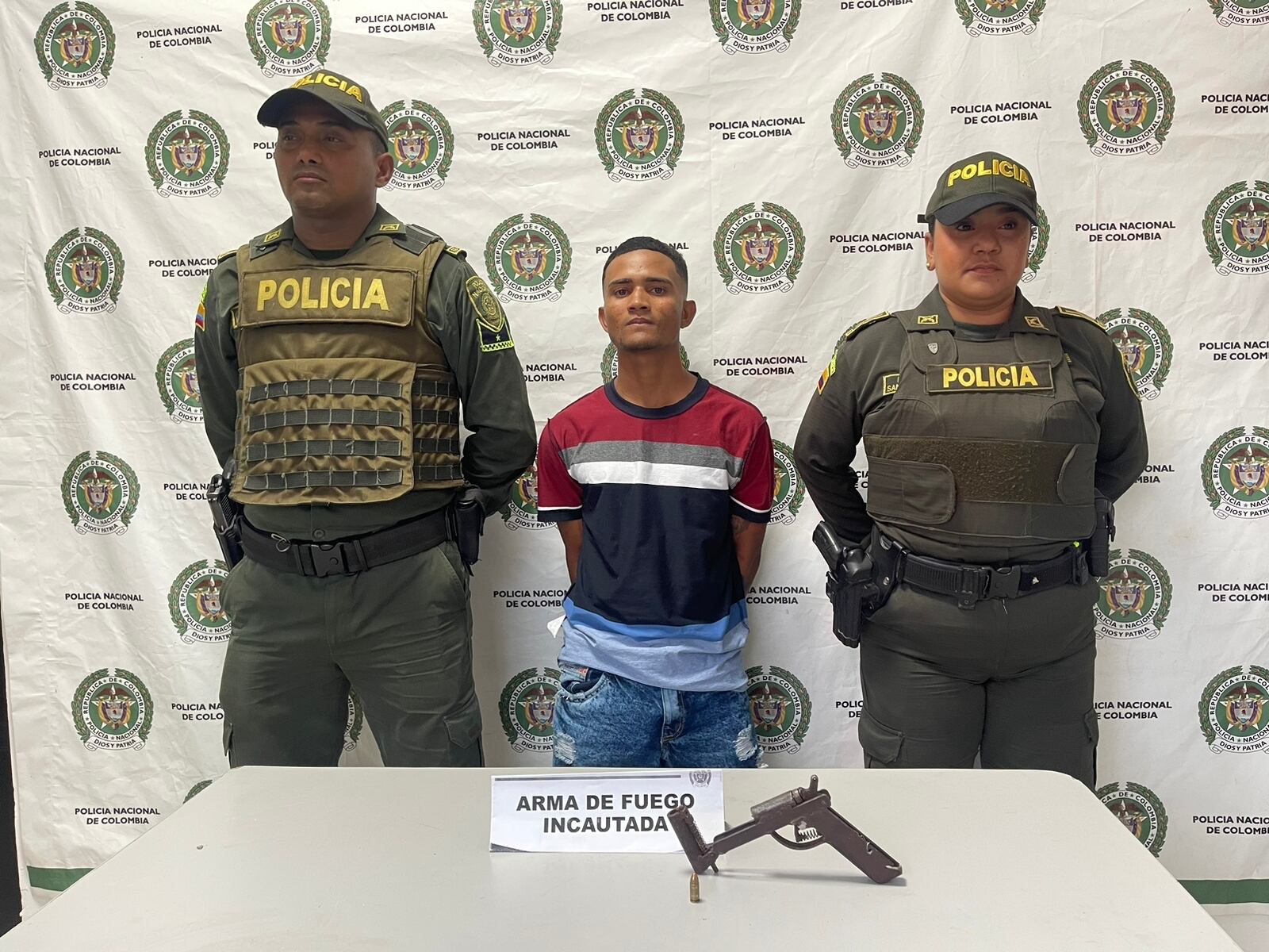 Al notar la presencia de los uniformados, Marrugo Pájaro intentó escapar, sin embargo, los uniformados lograron alcanzarlo y capturarlo. En la requisa le encontraron un arma de fuego tipo artesanal con un cartucho calibre 9 mm.