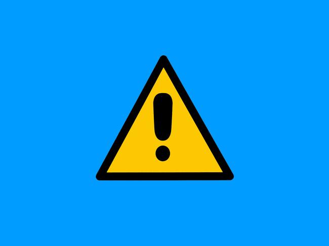 Warning sign with yellow and black triangle with exclamation mark, on blue background. Danger, risk, caution, attention, road sign and care concept. / DAVID BENITO