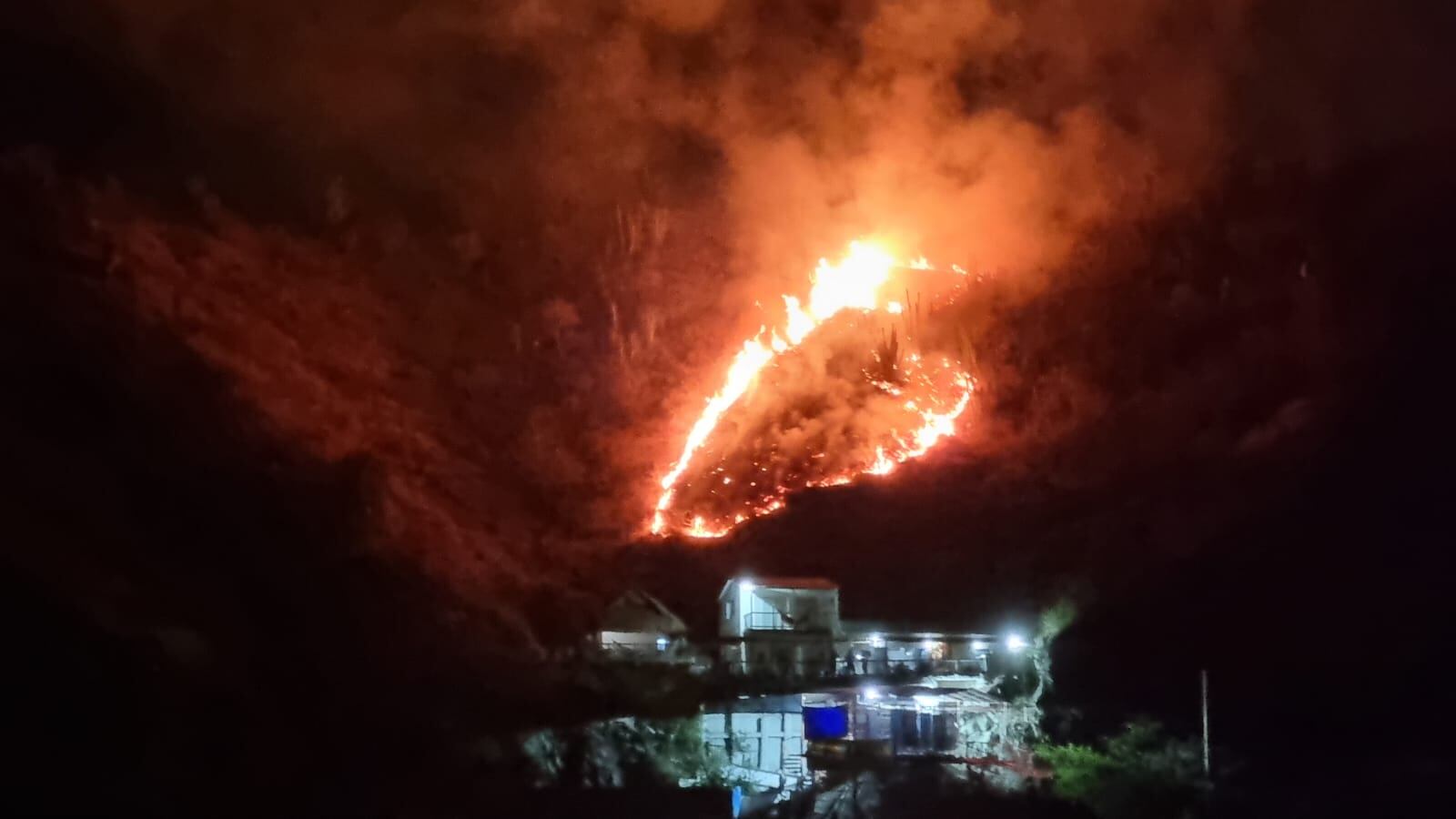 Unidades del Cuerpo de Bomberos Voluntarios de Santa Marta, atendieron una emergencia por incendio forestal en el cerro de Playa Blanca, el cual amenazaba con afectar una estructura donde prestan servicios turísticos.