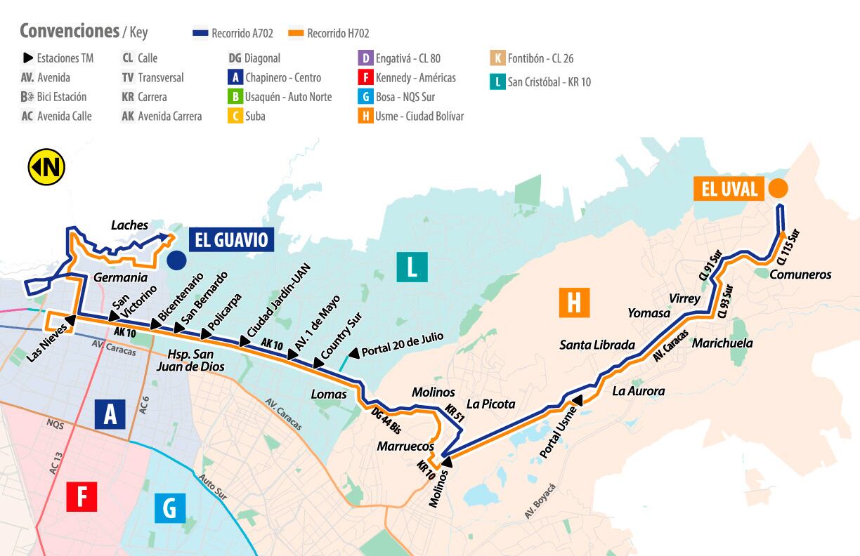 - Servicio zonal A702 ahora se llamará ‘El Guavio’ y el H720 ‘El Uval’, es decir, al recorrido se le agregarán dos barrios más: los Laches y Germania.