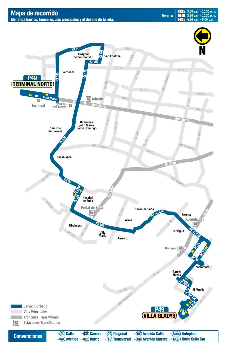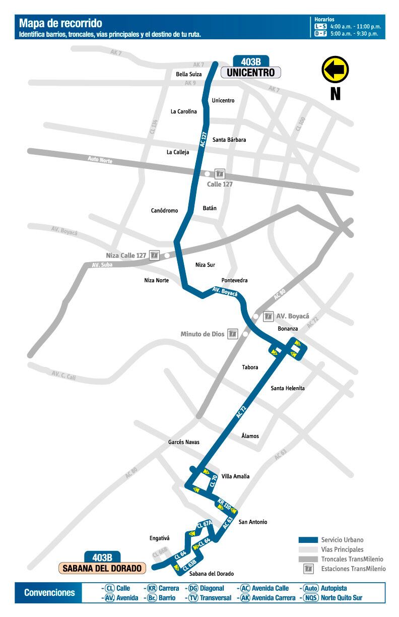 - Servicios zonales números 37 de Unicentro a Engativá, P49 Terminal Norte a Villa Gladys y 403B Unicentro a Sabana del Dorado, suspenderán su trayecto por la carrera 105A, es decir, a la altura del sector Plazuelas del Virrey y pasarán por la carrera 105F.