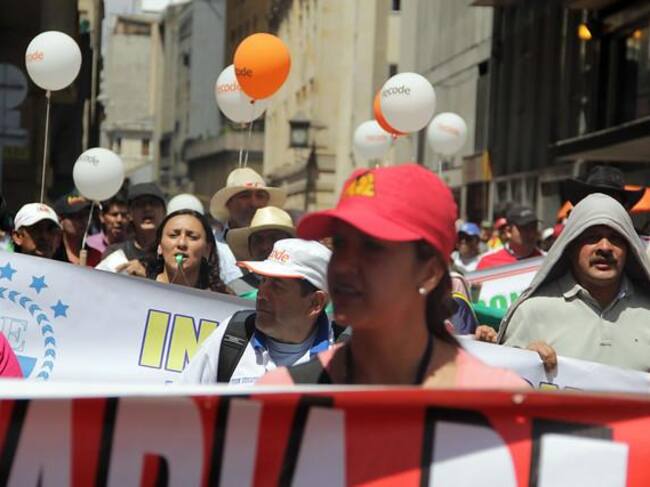 Los docentes arribaron a la Plaza de Bolivar de Bogotá tras radicar pliego de peticiones en el Ministerio de Educación. / Colprensa