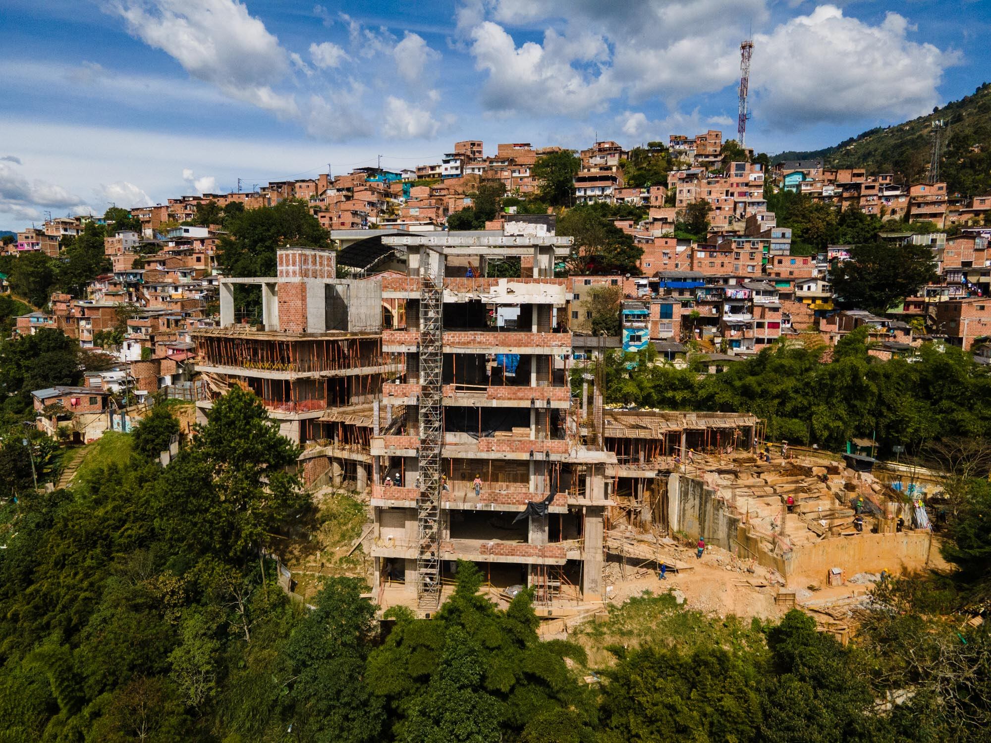 A un año de comenzados los trabajos en la Biblioteca España ubicada en la Comuna 1 de Medellín, la reconstrucción de la Biblioteca España avanza en un 50%, lo que permitiría su reapertura en este 2023.