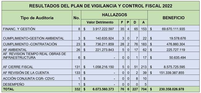 El resultado es de todas las investigaciones realizadas por el organo de control en el 2022