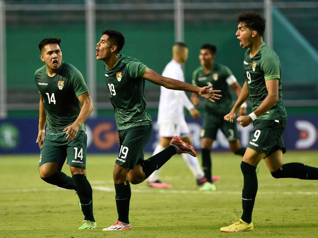Fernando Nava celebra el gol con el que Bolivia venció a Venezuela por el Grupo B de la fase de grupos del Sudamericano Sub-20 (Photo by JOAQUIN SARMIENTO / AFP) (Photo by JOAQUIN SARMIENTO/AFP via Getty Images) / JOAQUIN SARMIENTO