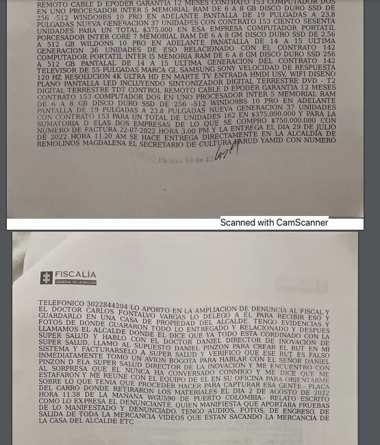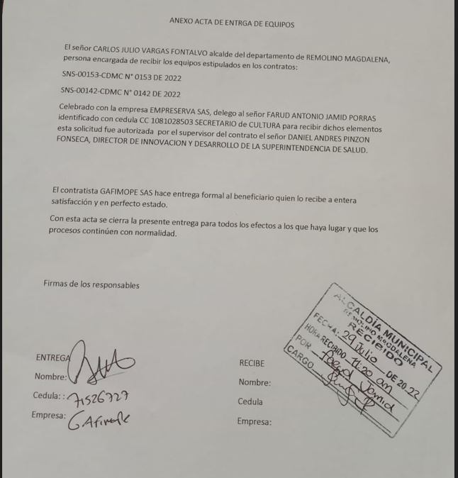 Entre las pruebas que analizan las autoridades aparece un documento de esa alcaldía con sello de recibido, y aparentemente con la firma del secretario de Cultura Farud Antonio Jamid.
