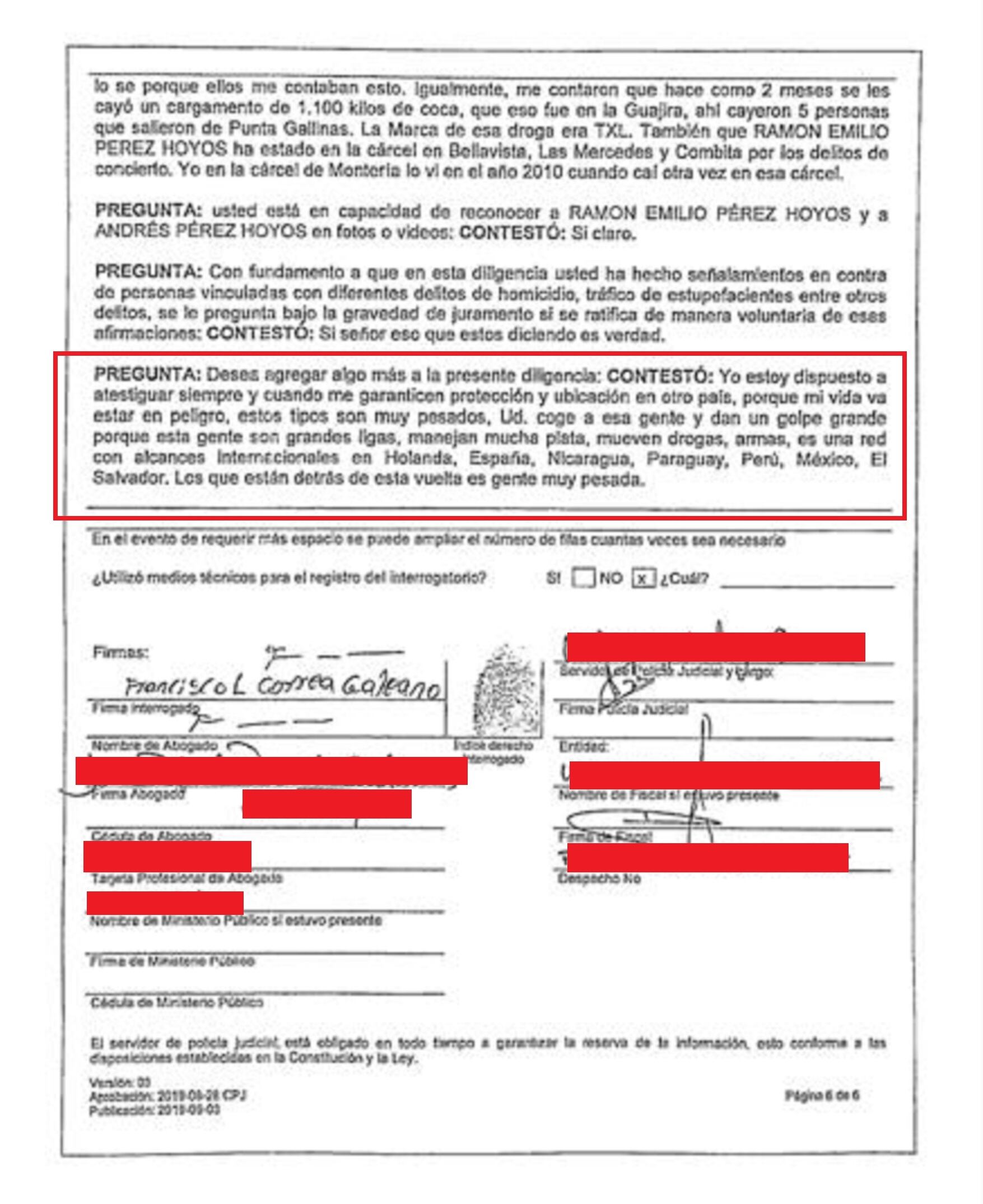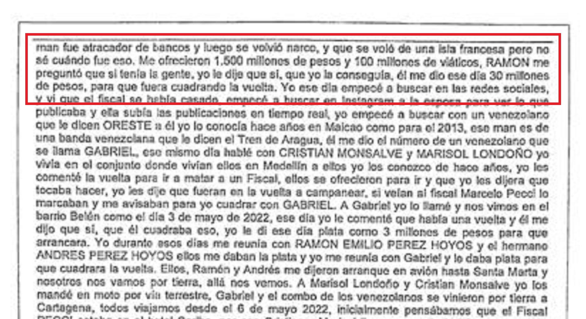 “Esos tipos son muy pesados, son grandes ligas, manejan mucha plata, mueven drogas, armas, es una red con alcances internacionales en Holanda; España; Nicaragua; Paraguay; Perú; México y El Salvador. Los que están detrás de esa vuelta es gente muy pesada”.