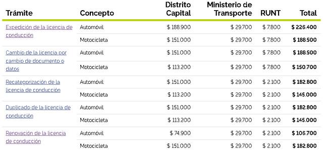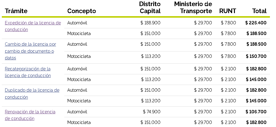 Tarifas de renovación de licencias de conducción en Bogotá