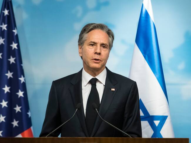 JERUSALEM, ISRAEL - JANUARY 30: U.S. Secretary of State Antony Blinken speaks during a press conference before a meeting with Israeli Minister of Foreign Affairs Eli Cohen (not pictured) on January 30, 2023 in Jerusalem, Israel. The secretary of state's visit is part of a three-day trip to the region that has taken on new urgency after an escalation of Israeli-Palestinian tensions. (Photo by Amir Levy/Getty Images) / Amir Levy