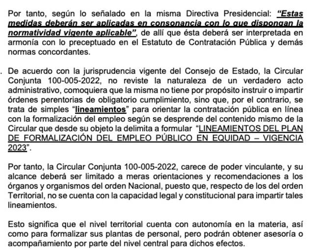 El documento dirigido al director del DAPRE, Mauricio Lizcano, enfatiza que dicho acto se encuentra subordinado a las normas de mayor jerarquía dentro de las cuales se encuentra el Estatuto de Contratación Pública.