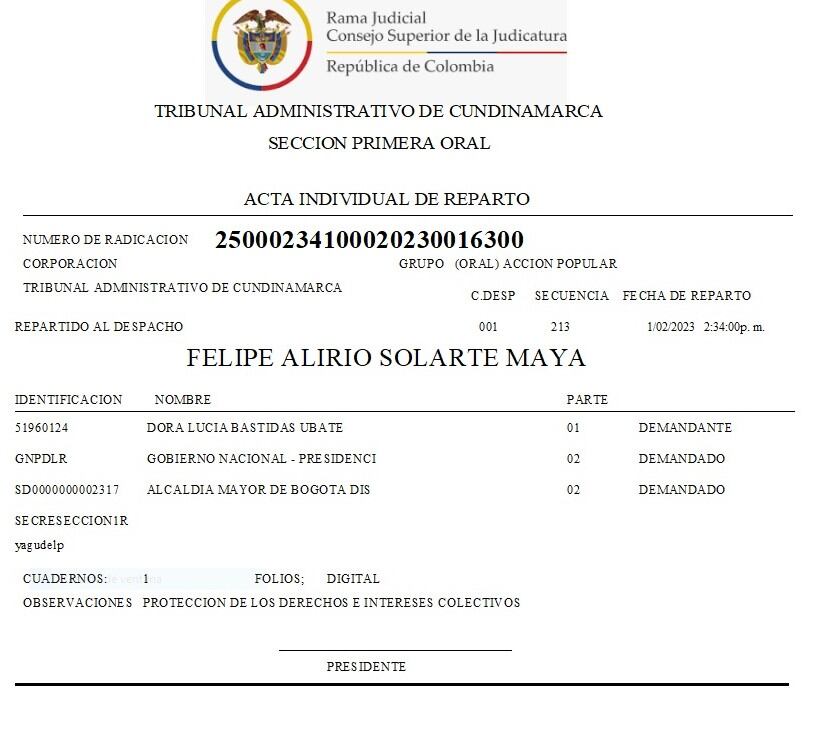 El caso ya fue repartido para estudio y correspondió al magistrado Felipe Alirio Solarte quien definirá si se admite o rechaza la acción popular.