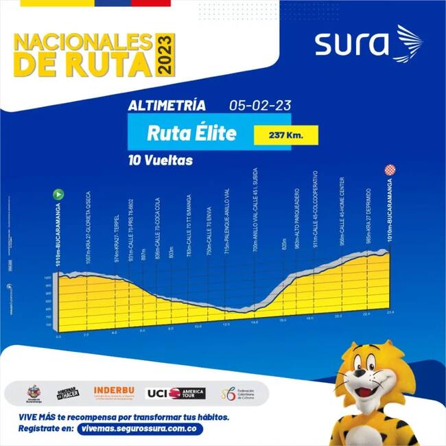 Los corredores deberán completar diez vueltas en un circuito en las calles de Bucaramanga, que suman 237 kilómetros.