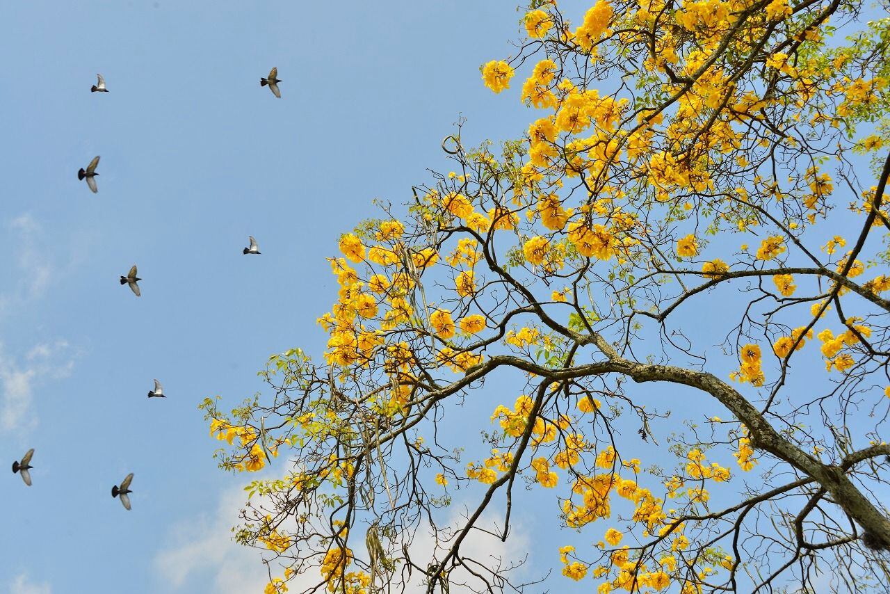 Según expertos de los 300 mil árboles que hay en Cali, 14 mil son Guayacanes los cuales florecen dos veces por año, y por estos días gracias a una pequeña tregua en las lluvias se ha dejado al descubierto una explosión de colores que tiene encantados a propios y visitantes.