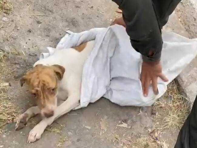 “Nos reportan un caso de un canino que dejaron abandonado, amarrado en un costal. Hacemos presencia con Policía donde encontramos un ser sintiente llorando con mucho dolor”, dijo Dixon Mendoza, director del Centro de Atención y Protección Animal, Capa.