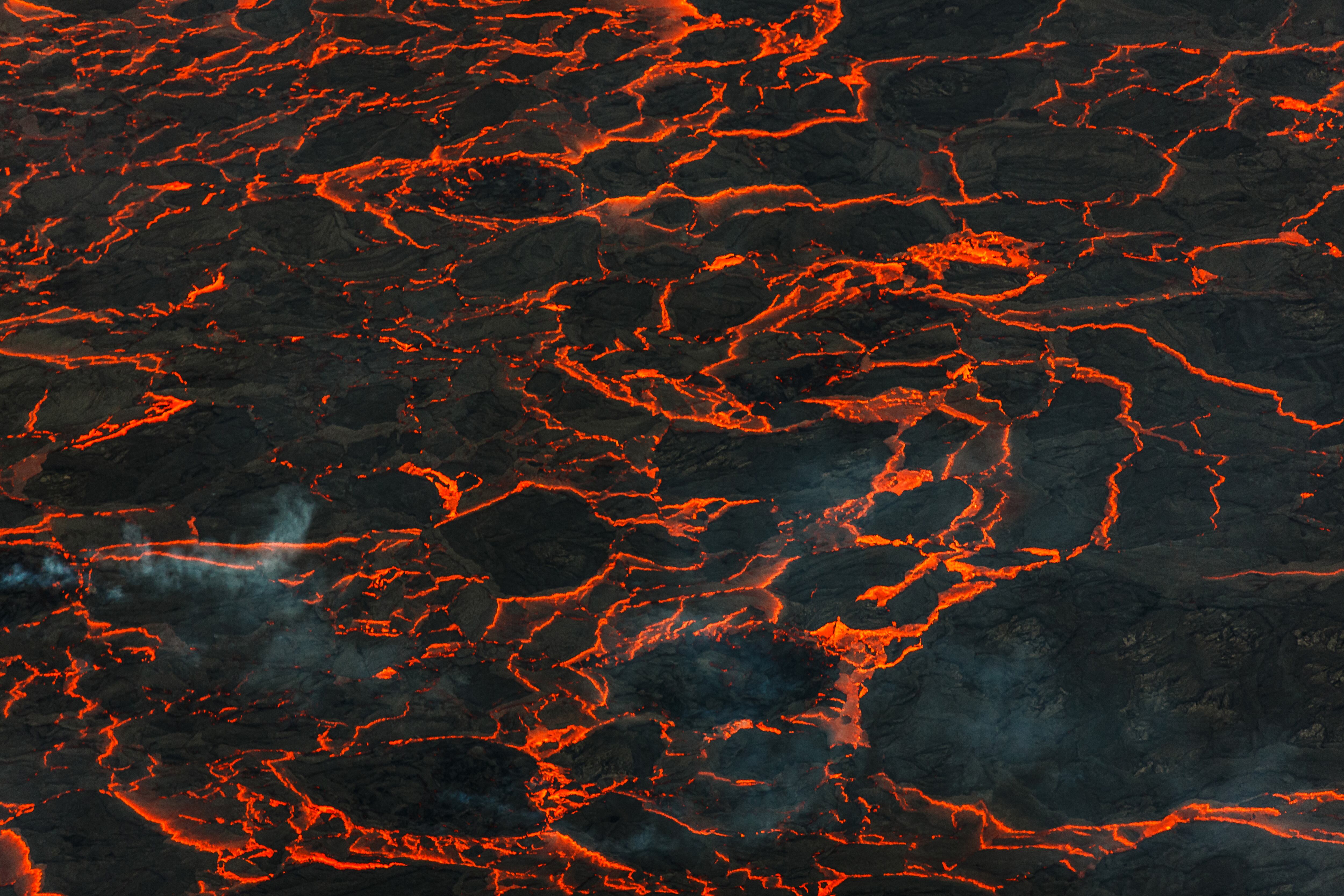 Lava flowing from the Holuhraun Fissure Eruption by the Bardarbunga Volcano, Iceland. On August 29, 2014, a fissure eruption started in Holuhraun at the northern end of a magma intrusion that had moved progressively north, from the Bardarbunga volcano. Bardarbunga is a stratovolcano located under Vatnajokull, Iceland's most extensive glacier. / Arctic-Images