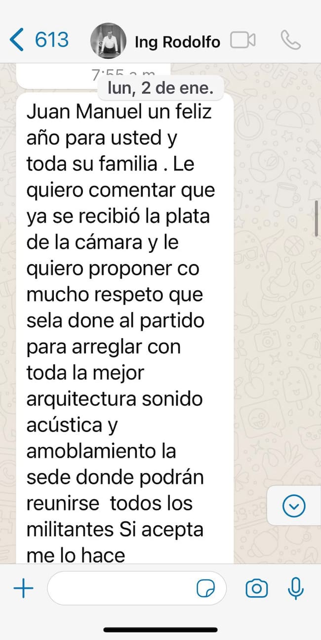 Asimismo, el congresista se refirió a los mensajes que recibió de Hernández pidiéndole que hiciera esa donación de los $109.611.000 a los que tendría derecho, para “remodelar las oficinas del partido”.