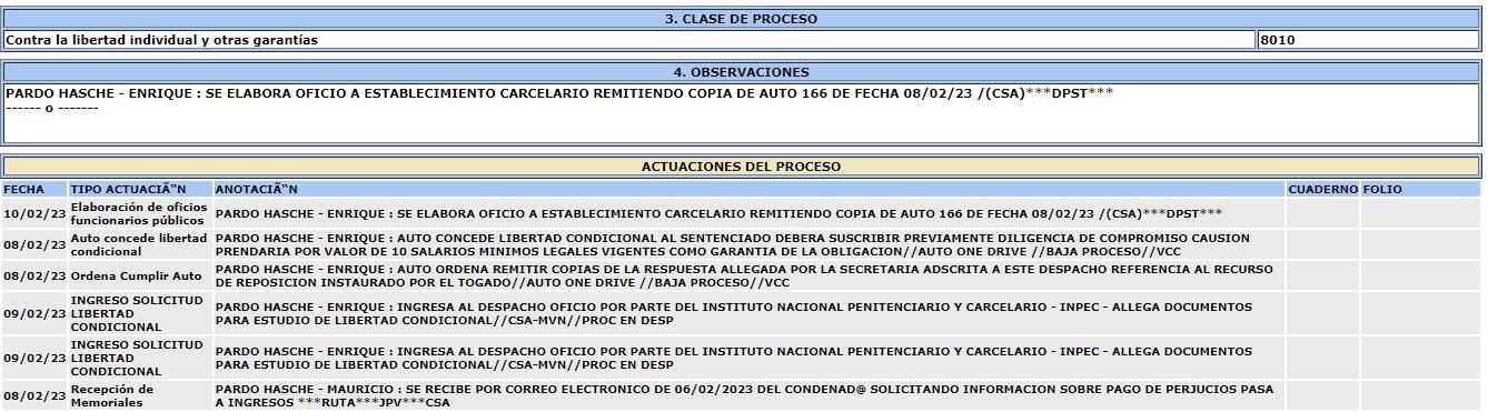 De acuerdo con los registros de la Rama Judicial, el beneficio le fue otorgado el 8 de febrero de 2023.