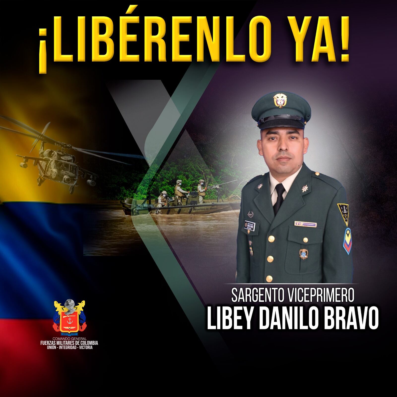 Se trata del sargento viceprimero del Ejército Nacional Libey Danilo Bravo, quien fue secuestrado el martes 14 de febrero por hombres armados que lo obligaron a subir a una camioneta en el municipio de Arauquita.