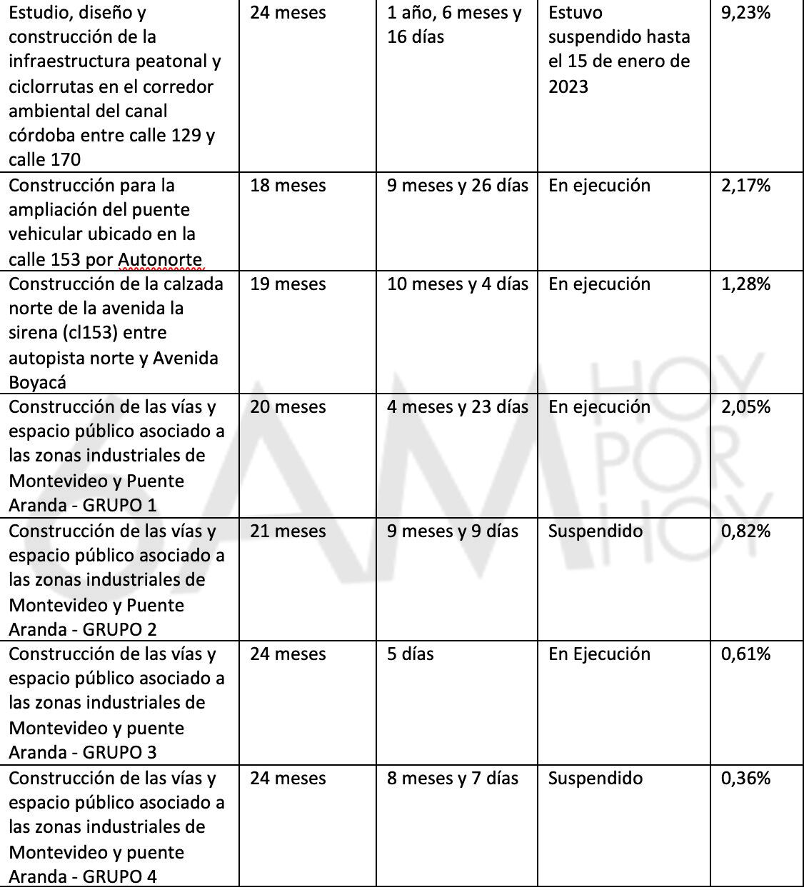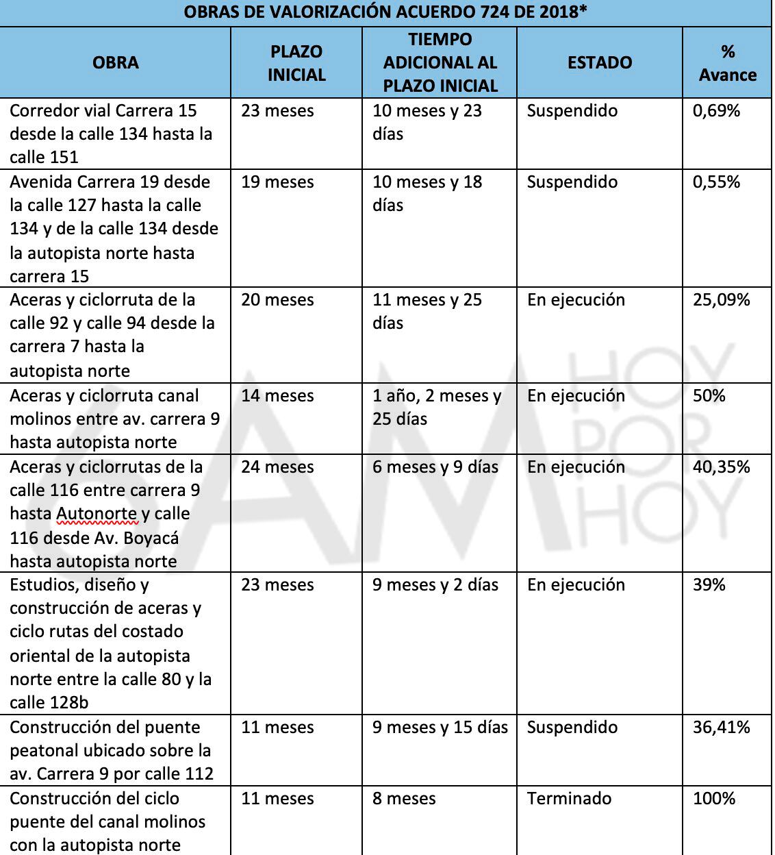 Obras de valorización en Bogotá están demoradas 290 días adicionales, en promedio