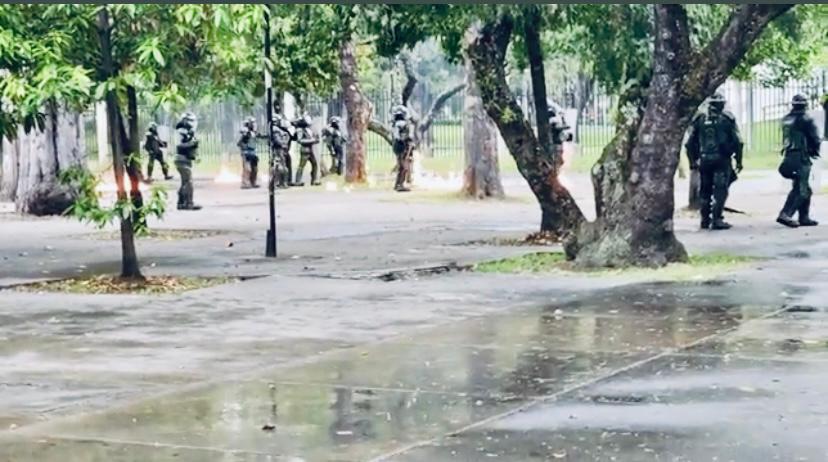 Este miércoles, disturbios entre la fuerza pública y encapuchados en la Universidad Nacional provocó el cierre total de la NQS a la altura de las instalaciones de la universidad