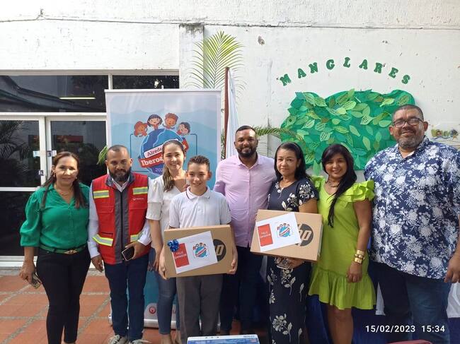 Veolia Aseo Cartagena realizó la premiación a la Institución Educativa Promoción Social sede Jorge Eliecer Gaitán donde estudia el ganador de la novena versión de la campaña educativa “Alrededor de Iberoamérica 2022″, Elías David López Centeno con su proyecto “H2O Líquido Vital para la Vida”, cabe resaltar que a la rectora Carmen Rangel se le hizo entrega de 3 computadores portátiles y una impresora; al estudiante un computador e impresora, como también el servicio de internet por un año y una beca para estudiar, esta premiación contó con la participación de Mario Rafael Lombana Moreno Director Administrativo de Calidad Educativa y Joneira Puello Salas Líder de Proyectos Educativos Transversales de la Secretaría de Educación de Cartagena.