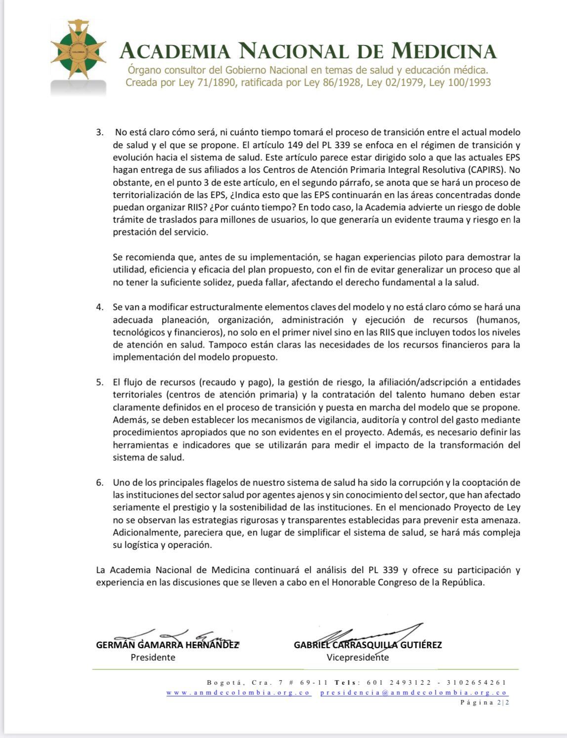 Comunicado Academia Nacional de Medicina página 02.