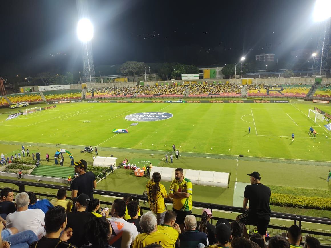 Domingo en la noche y se jugaba el partido entre Atlético Bucaramanga y Atlético Nacional correspondiente a la fecha 5 de la Liga BetPlay, Jhon Fernando Ramos ingresó al Estadio Alfonso López acompañando a Jhon Mario Duarte y Juan David Pérez, dos personas con discapacidad visual que iban a alentar a su equipo y de una manera curiosa empezó a narrarles el partido y sus espaldas se convirtieron en la cancha de juego.