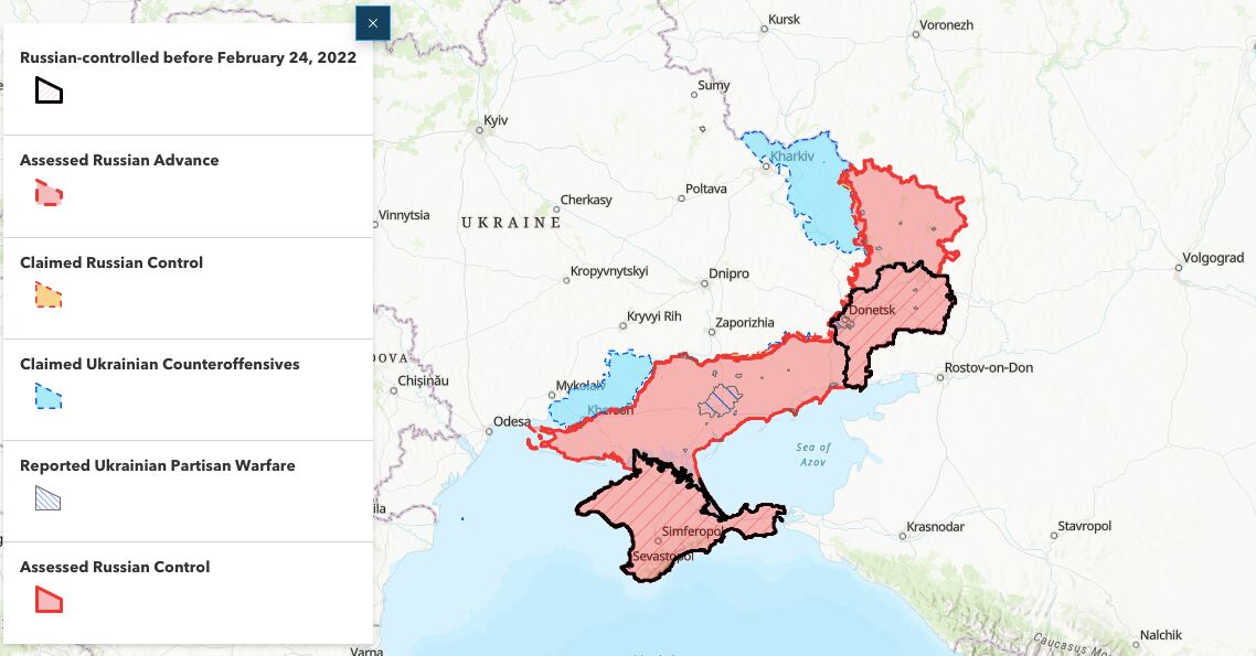 Mapa tomado de 'Institute for the Study of War and AEI's Critical Threats Project', por George Barros , Kateryna Stepanenko , Thomas Bergeron, Noel Mikkelsen y Daniel Mealie.