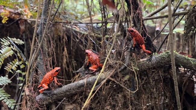 Hace algunos días, se dio a conocer el decomiso de diez ranas venenosas arlequín, que iban a ser comercializadas en la capital del Valle del Cauca. Los pequeños animales fueron incautados en un operativo realizado por la Policía Nacional y luego de su valoración, se reintrodujeron a su lugar de origen en el departamento del Chocó.