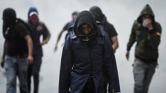 Encapuchados en la sede de Bogotá de la Universidad se enfrentaron al ESMAD.