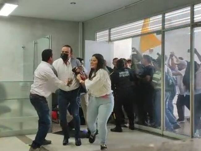 En medio de empujones y golpes llegó gobernador de Santander a la asamblea de Cdmb