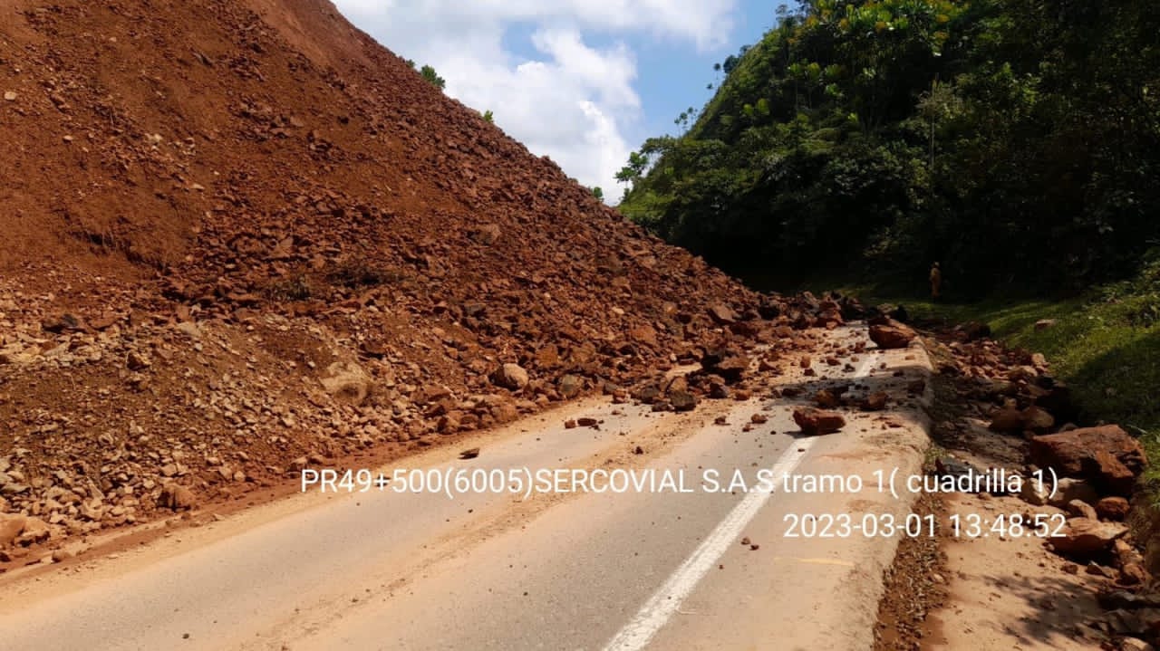Esto, tras las fuertes lluvias de las últimas horas en el municipio de San Luis, donde se registró un movimiento de masa, que desde hace varios días se viene registrando caída de rocas y desprendimientos de tierra y para evitar que algún vehículo quede atrapado.