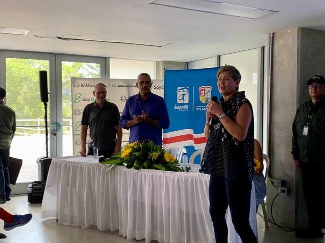 Primera dama Verónica Alcocer durante el lanzamiento de la selección Colombia femenina de fútbol de amputados en Barranquilla./ Caracol Radio