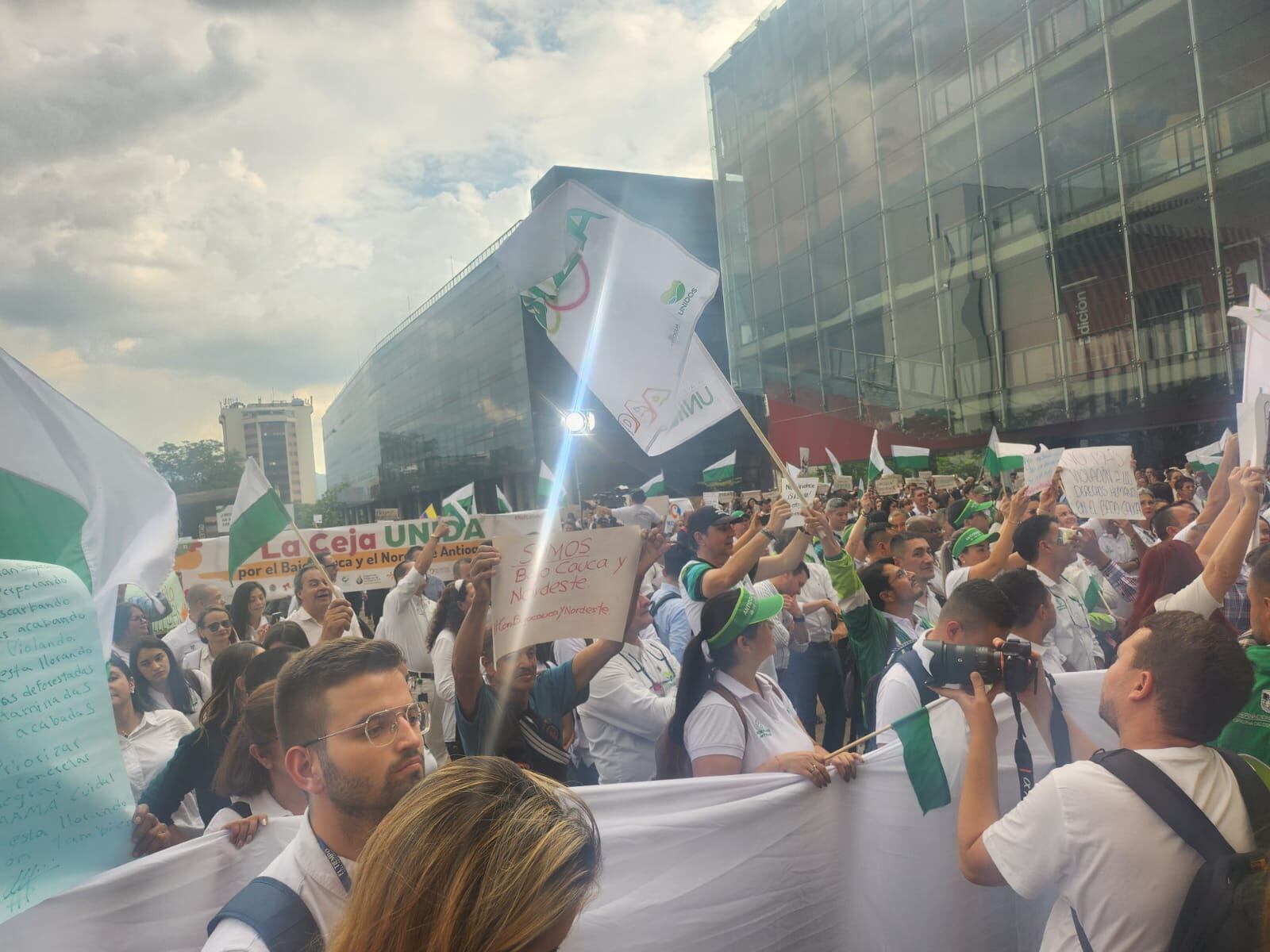 Cientos de personas se congregaron en La Plaza de la Libertad en el centro administrativo La Alpujarra en Medellín, en el plantón convocado por el Gobernador de Antioquia para enviar un mensaje de solidaridad con quienes traviesan una difícil situación por cuestan de los hechos violentos y el paro del minero en el Bajo Cauca antioqueño.