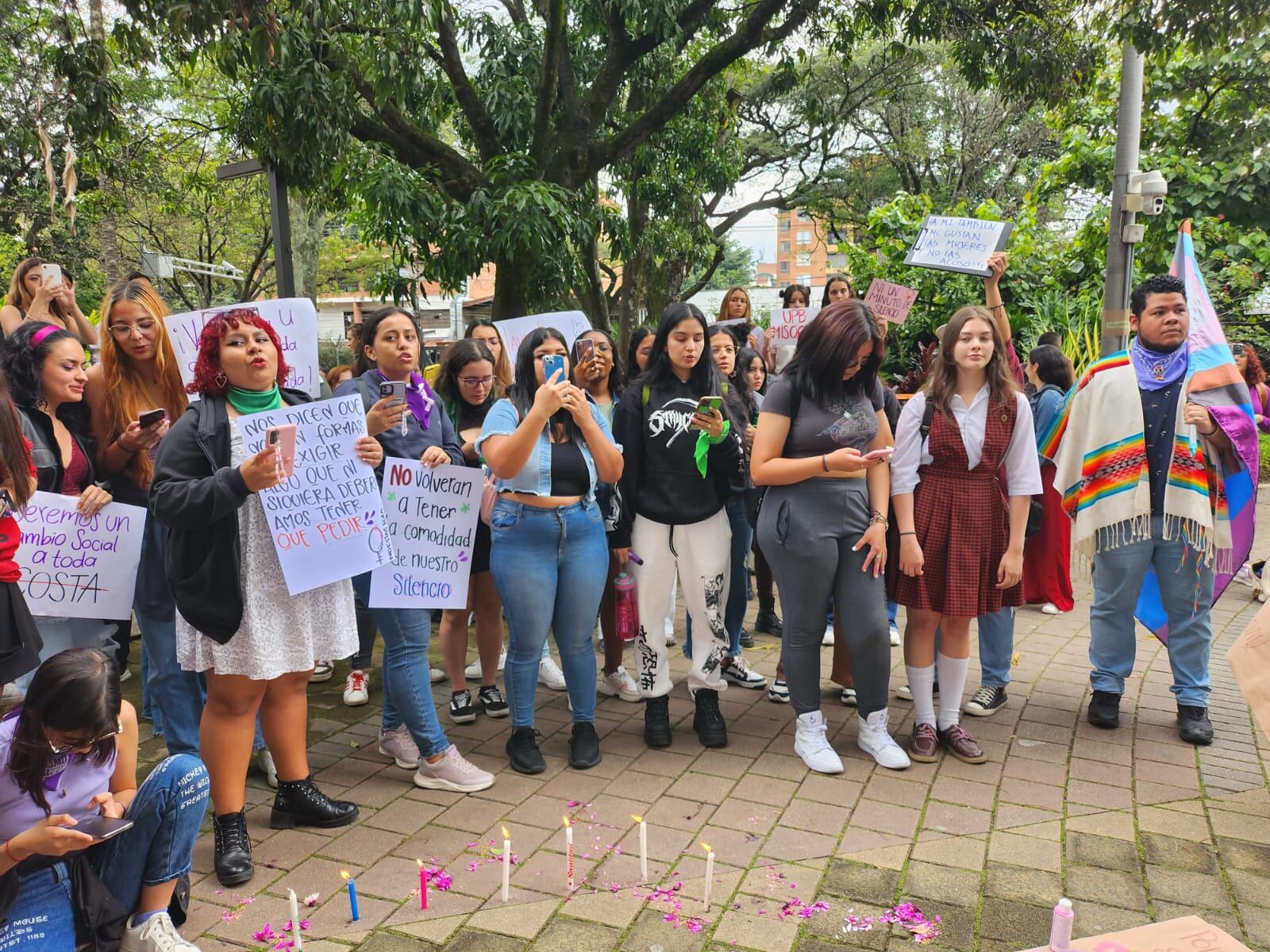 Mientras tanto, estudiantes y colectivos feministas de la ciudad, realizaron un plantón a las afueras de la institución, para exigirle a la universidad una reparación y aplicación real y efectiva, de las rutas creadas para le eliminación de este tipo de violencias de género, dentro del claustro.