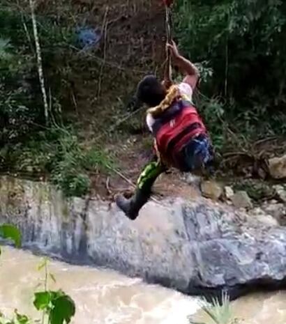 Es la historia de Samuel Ordóñez y sus compañeros, que antes de emprender el recorrido valiéndose de este mecanismo, pasan por senderos al pie de barrancos y que se vuelven casi que intransitables durante la temporada de lluvias que por esta época afecta a esa región del suroccidente del país.