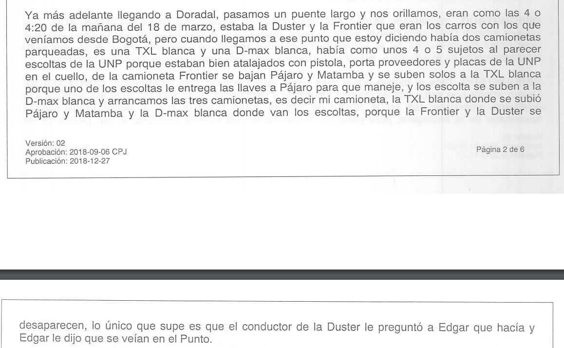 Después todos arrancaron para el Magdalena Medio. Llegando a Doradal cambiaron de camionetas y aquí es donde Manuel dice que posibles integrantes de la UNP los escoltaron hasta una finca.