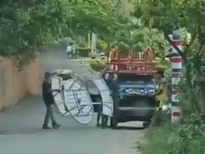 En otro vídeo quedó registrado el momento en que un grupo de personas están montando a un vehículo algunos implementos que hacen parte del parque, lo que ha causado conmoción es que esto se está haciendo a plena luz del día y ante la vista de las personas que están transitando por el sector.