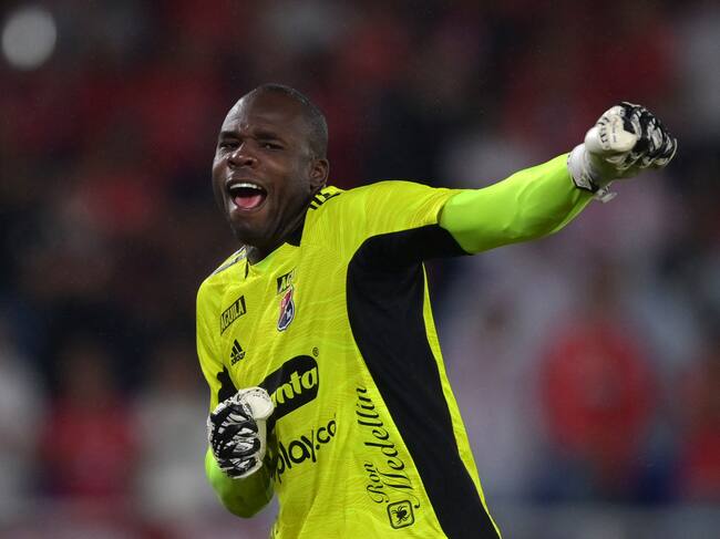 Andrés Mosquera Marmolejo, arquero del Independiente Medellín. (Photo by Luis ROBAYO / AFP) (Photo by LUIS ROBAYO/AFP via Getty Images) / LUIS ROBAYO