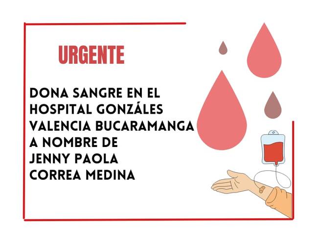 El estado de salud de Jenny Paola Correa Medina es reservado y en este momento necesitan con urgencia donación de sangre a nombre de esta mujer para salvar su vida.