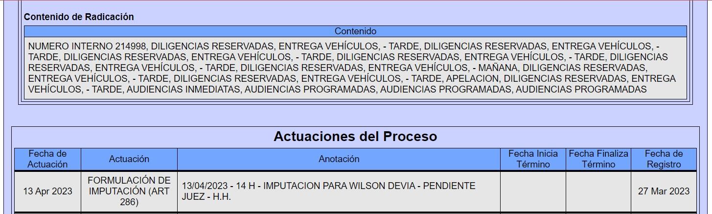 Citación a imputación de cargos en contra de Wilson Devia por presunta corrupción en la UNP