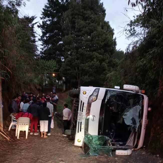 Las autoridades adelantan las investigaciones para determinar las causas del volcamiento de un bus en la vereda La Asunción de Marinilla, Oriente antioqueño, que dejó a nueve personas lesionadas, entre ellas un menor de edad.
