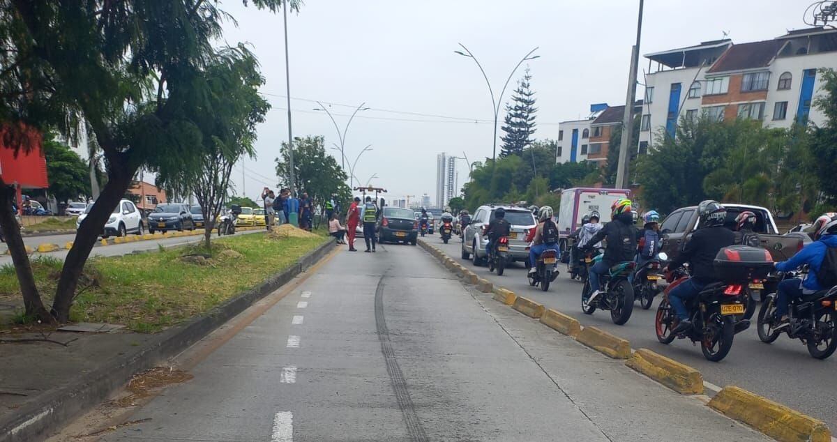 Caos en la autopista F/blanca - Bucaramanga por cuenta de un invasor del carril exclusivo