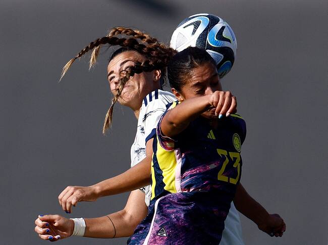 Doble cabezazo en el área luego de un cobro de tiro de esquina de Catalina Usme. La arquera Durante se quedó con el balón.