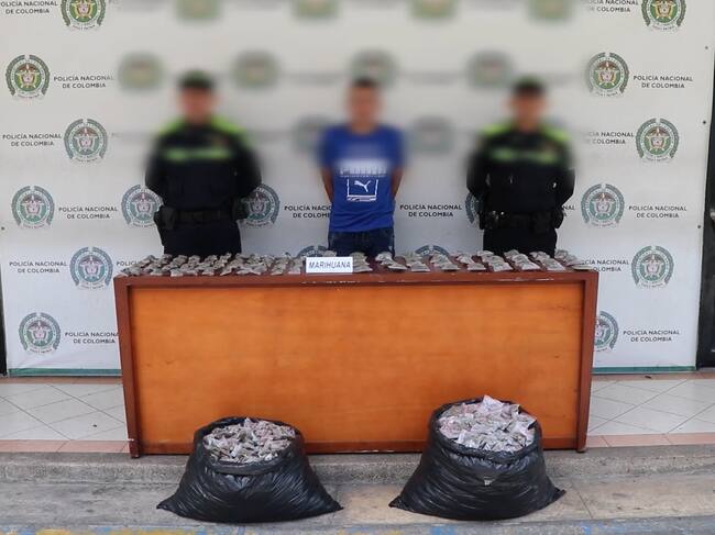 La Policía Metropolitana de Pereira, ha dado a conocer que, en el barrio Cortés de la capital risaraldense, fue detenido un vehículo para hacer el correspondiente proceso de registro, momento en el que los uniformados vieron como sospechoso al conductor, a quien le pidieron verificar el interior del carro, fue allí donde, en la silla trasera, donde ubicaron dos bolsas negras y en su interior 2.300 pequeñas bolsas transparentes que contenían en total 20.000 gramos de marihuana.