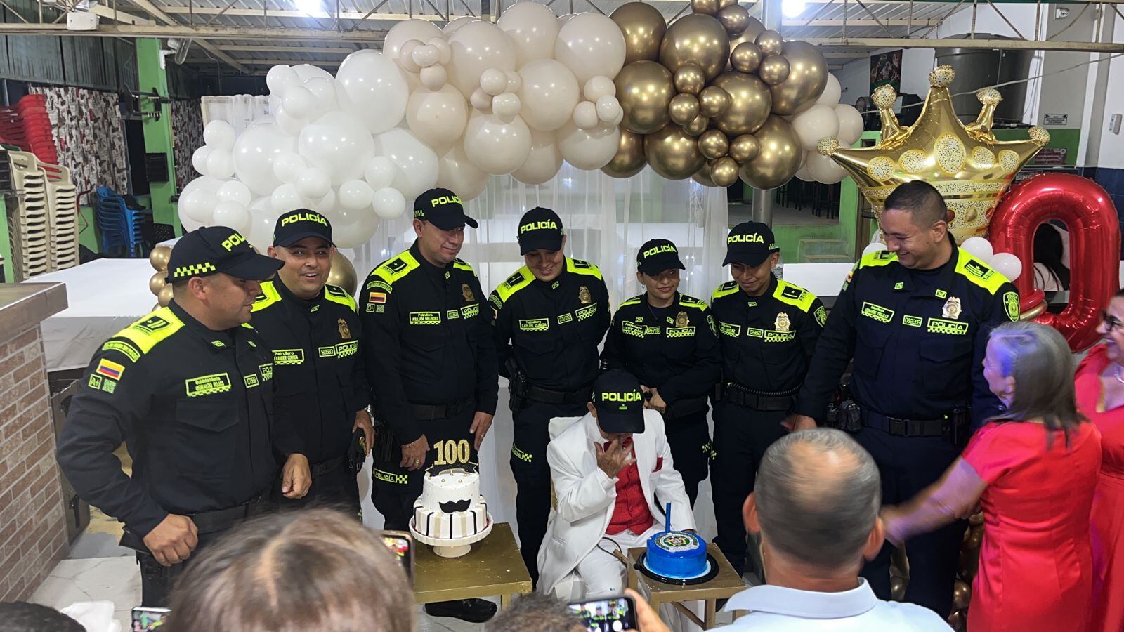 Don Efra cumplió 100 años de vida en Santa María, la Policía se los celebró