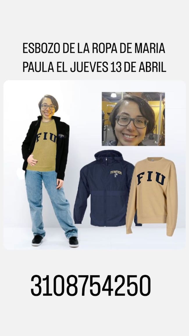 María Paula tenía un saco amarillo, una chaqueta azul, jean azul claro, tenis negro y gafas.