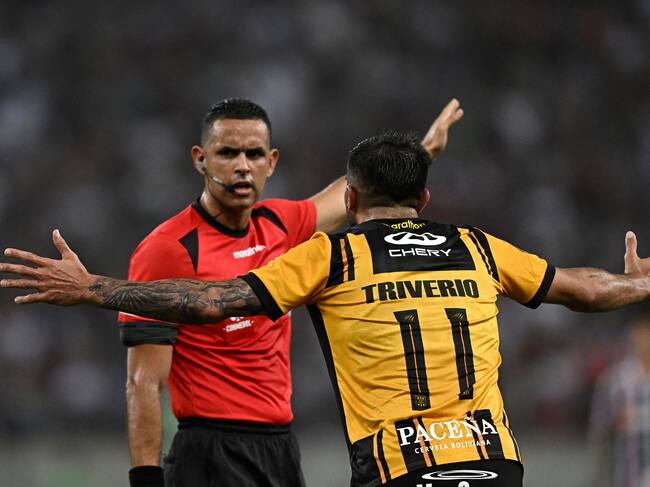 Enrique Triverio reclamándole al árbitro Carlos Ortega. (Photo by MAURO PIMENTEL / AFP) (Photo by MAURO PIMENTEL/AFP via Getty Images) / MAURO PIMENTEL