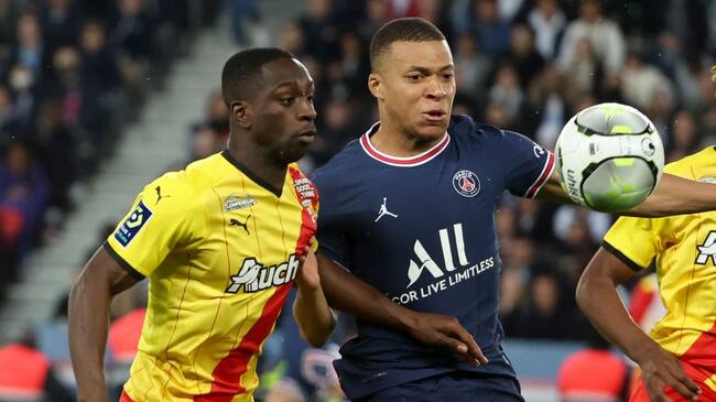 Deiver Machado (izquierda) y Kylian Mbappé (derecha) durante un duelo entre el PSG y el Lens por la Liga de Francia (Photo by John Berry/Getty Images)